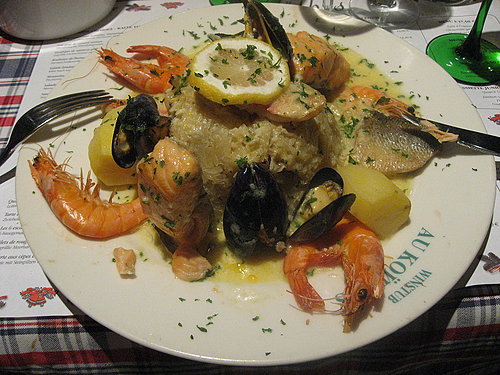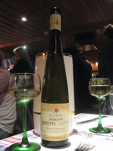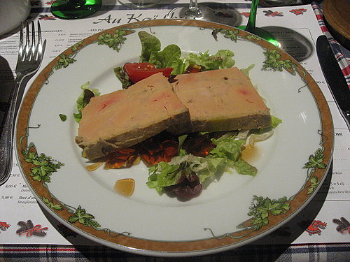 阿爾薩斯名列法國重要葡萄酒產區之一, 而在此酒鄉之中, 又可說以柯爾瑪(Colmar)為此區的酒都, 通常是葡萄酒愛好人士參訪葡萄酒道(Route des Vins)時所不可錯過的一站。 該城不但酒香四溢, 景色更是怡人, 倘佯其中, 恍如置身世外桃源, 尤其夜空繁星點點時, 整座城市處處點亮了各式照明, 好不愜意。 除此之外, 每年7月份舉行的國際古典音樂節及年底的耶誕市集, 更吸引了各地的人潮前往, 是當地最重要的文化盛事。 既然柯爾瑪以釀酒為名, 好酒自然離不開好菜, 大部分的餐廳仍以提供地方傳統菜色為主, 其中城中心的Au Koïfhus稱得上是一間甚具名氣的食堂。 餐廳的建築是此城最具悠久歷史的地標, 用餐時段熱鬧的氣氛總是不絕於耳, 所以非常適宜全家光臨, 這點讓有兩位調皮小朋友的我們感到十分自在。 各類菜餚談不上高檔精緻, 但份量十足有滋有味, 純粹是家鄉式的手路菜。 瞧瞧那原產地的整片鵝肝, 厚度足足有2公分, 一片像手掌般大小, 一份前菜居然提供兩片, 可真是豪邁啊! 烤蝸牛味香肉嫩, 連蝸牛的尺寸也是加大版的。 至於主菜, 無論是陶鍋燉肉、酸菜海鮮、紅蘿蔔牛肉…等, 都具有基本水準以上的表現。 有了美好一餐的補給, 全家的旅遊行程更具活力。