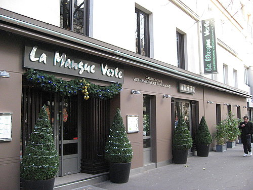 巴黎十三區雖說是亞洲餐館林立的地區, 然而實際上想要品嚐到道地的亞洲各國料理卻不是件易事, 許多餐館所提供的往往都是融合了中、泰、越、寮、柬、緬、星甚至是日、韓等國的料理, 說得更直接一點, 就是大雜燴。 但你說法國人不懂亞洲料理而毫無條件地接受嗎, 那也未必公允, 至少這樣的餐館形式提供了一種用餐的便利性與品嚐美食以外的氣氛情趣。 例如La Mangue Verte標榜的雖是泰式及越式料理, 思鄉的我們總能在那兒吃到「豆花」, 菜單一打開, 樣式多到短時間內難以選擇, 檸檬蝦湯、 蝦餅、 泰式咖哩飯、 中式燒鴨飯、 越式牛肉河粉、 燒烤肋排、 甚至是越式火鍋、 …。 餐廳的經營已跳脫了此區多數快餐店的模式, 以法國巴黎的物價而言, 餐點的價格算是相當合理, 口味及衛生條件也能迎合當地人的要求, 無論是過往遊客或是巴黎居民, 人潮總是川流不息。 若是至此區購物逛街, 或是想嚐嚐亞洲料理而對選擇店家拿不定主意時, 不妨至該餐廳試試。 為提供大家實用資訊 便利前往自行判斷高下 今後儘可能地標示出店家聯絡方式 餐廳地址: 100, Avenue d'Ivry 75013