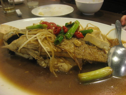 成就一道既簡單又美味的海鮮料理, 只要食材新鮮, 調味(特別是鹽的使用)精準, 火侯掌握得宜, 這對願意進庖廚的人並不難, 但往往有時反而是專業的餐廳對這些基本的要求無法到位。 在台北街頭隨處可見的海產店中, 品質參差不齊, 而位於北寧路上標榜以新鮮直送澎湖漁獲海產的鮮魚店所烹調的料理確實能達到前述三項標準。 此外, 價位平實, 服務親切, 雖然無甚裝潢且飲料(特別是酒精類)品項甚差, 一週之內全家還是願意再去打牙祭, 椒鹽河豚、 煎比目魚、 炸花枝丸、 味增螃蟹鍋… 都是建議前往品嚐的菜色。