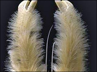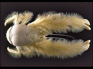 科學家們發現了一種新的水生貝殼類動物。這個不倫不類的深海怪 物是科學家們在太平洋南部2300米的深海中發現的。這個怪物的螯 上面上滿著毛髮,而且完全沒有眼睛及視覺功能。 據法國科學家們表示,這個深海怪物是2005年4月在太平洋南部距 離復活節島900英里的海中發現的。科學家們之所以直到現在才向 外界通報了這一新發現,是因為他們在此之前一直在考慮如何為這 個怪物命名。如今,這個即像蝦又像蟹且身生長毛的怪物被命名為 Kiwa hirsuta。由於它外貌和習性都非常獨特,因此科學家們暫時 將其列入一個全新的動物種屬Kiwaida。 科學家們稱,這種水生貝殼類動物目前在動物分類系統中尚難以找 到典型代表,因為它是科學家們剛剛發現的動物種類。科學家們已 經專門為它開創了一個新的科屬。Kiwa hirsuta的命名也有著其特 殊的含義:其前半部分Kiwa是波利尼西亞(太平洋中部各群島的總 稱)女神的名字,她是水生貝殼類動物的庇護神,而後半部分 hirsuta 的含義則是“多毛的”、“有須的”。 Kiwa hirsuta長約15釐米,長年生活在深海熱水中。最令科學家們 吃驚的是,生活在深海熱水中的動物甲殼和螯上面竟然還生長著如 此明亮且厚重的體毛。 科學家們表示,這一深海動物新種類的發現對世界各國的動物學家 們來說都稱得上是轟動性發現,因為自19世紀末以來這樣的發現還 未曾有過。此外,由於Kiwa hirsuta是科學家們發現的唯一一隻新 種類的代表,所以它將被陳列在巴黎自然歷史博物館供人們參觀。