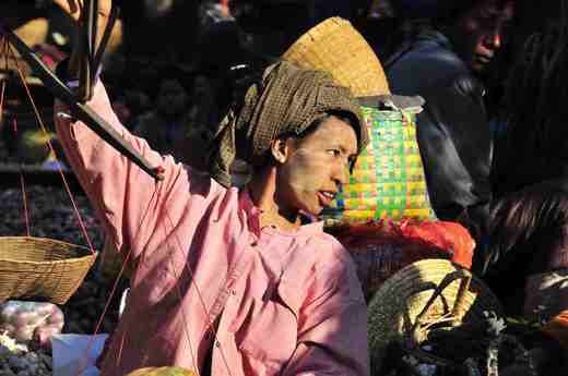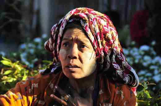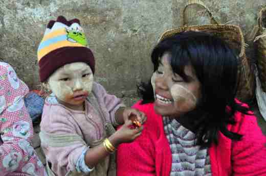 緬甸見聞-2 (明個拉拔) (緬甸人的臉譜) 與緬甸人見面, 雙手合十說聲 "明個拉拔" 。你就會看到一張燦爛的笑容、回你一聲 "明個拉拔"。 "明個拉拔" 是緬甸人見面的問候語, 不管早上、下午、晚上都適用。 緬甸人善良、保守、誠實、愛乾淨, 雖然不富有, 但看起來快樂、滿足, 極少有憂愁、憤懣的面容。加上信仰虔誠, 此地的治安非常好。 所以遊客一般不用擔心遭偷、遭搶。 最特別的是, 他(她)們的臉上會塗上白色粉狀物, 這是緬甸人特有的化妝品, 用一種樹皮磨成的。市面上到處都可以買到這種樹皮, 據說有美白、防曬的功能。 男女老少都可用, 似乎年輕女性和小孩特別愛用。 |
