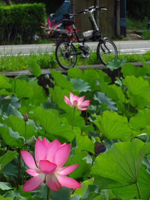 搭火車再騎單車,剛好趕上拍荷花光影好時刻