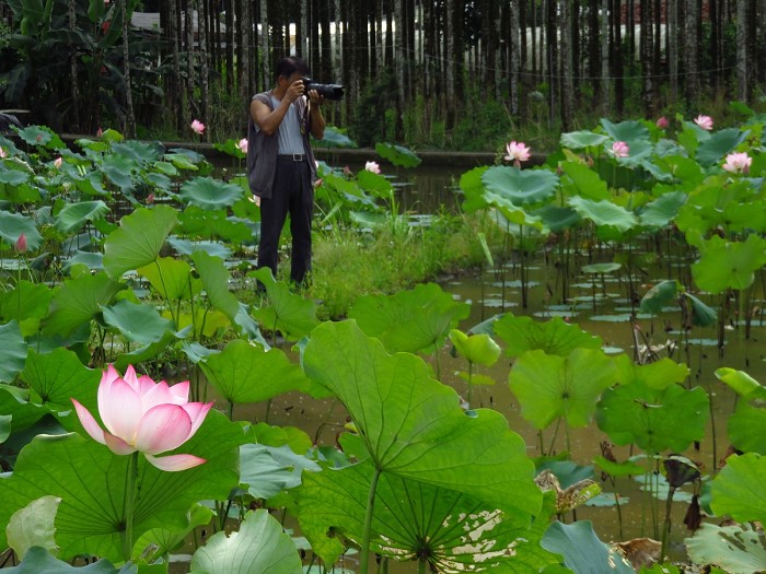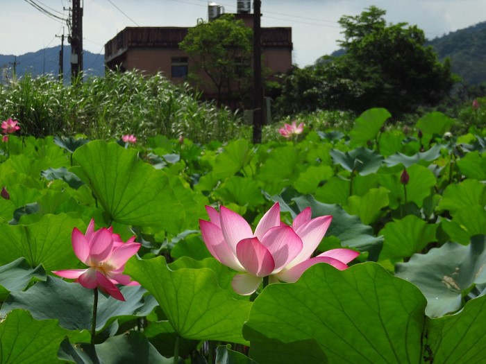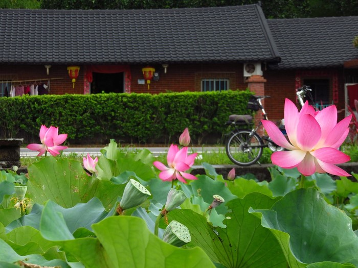 離開小鎮市街,幾公里處的林家古厝前,荷塘小而美