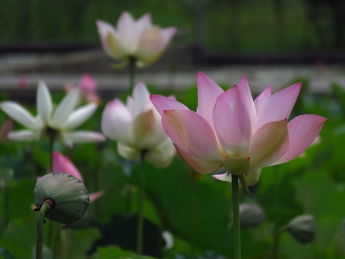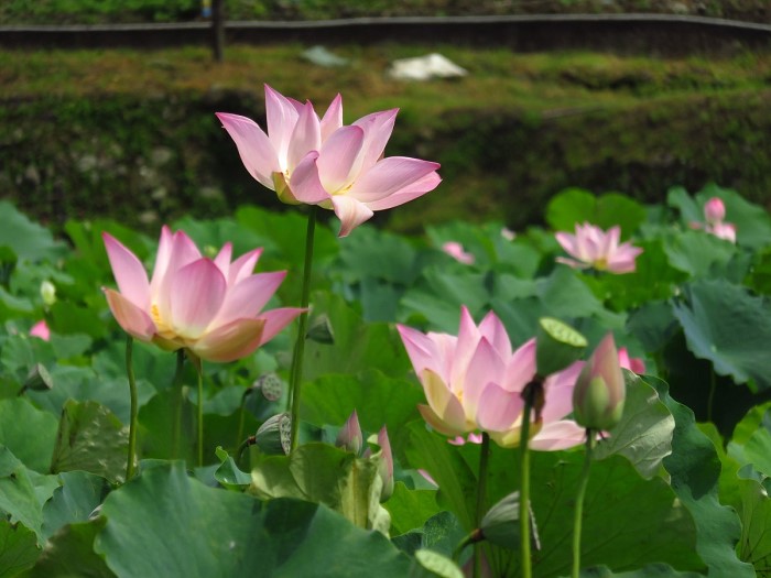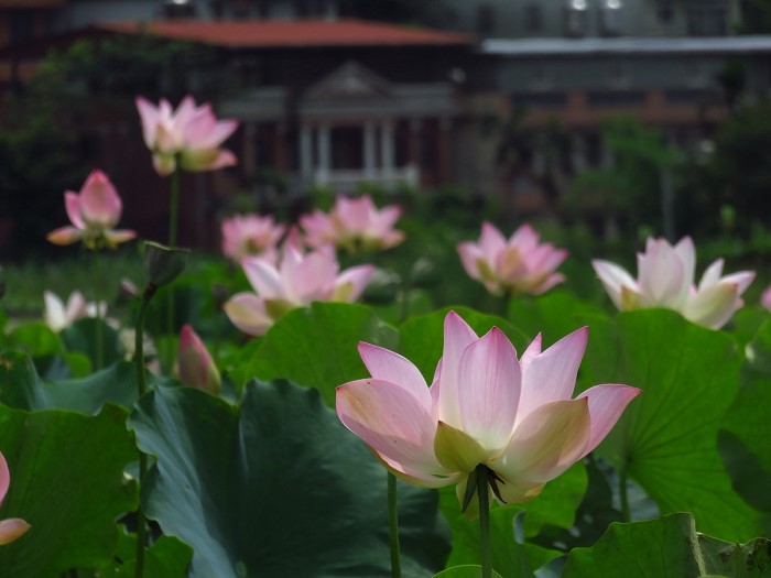廣大的田鄉風景鋪滿娉婷荷葉,粉嫩而嬌羞的花姿一朵朵在葉海探頭