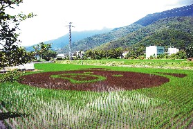 【記者羅紹平/台東縣報導】 誰說稻田一定得「綠油油」?台東縣關山鎮農會在緊鄰花東縱谷公路旁的水田,利用紫色水稻與一般傳統水稻混植進行稻田彩繪,刻意種出「關山米」三個大字、以及造型可愛的卡通豬圖案,讓稻田看來更活潑。 苗栗區農業改良場作物改良課副研究員兼課長張素貞博士,九十一年間即運用紫色水稻,在苗栗縣苑裡鎮進行田間彩繪,並獲得農委會大力推廣,台東縣關山鎮農會也於八月初在苑裡鎮農會技術指導下,引進紫水稻推廣種植,並在花東縱谷公路旁一點五公頃的稻田嘗試稻田彩繪。 半個月過去了,隨著水稻逐日成長,紫水稻與傳統綠色水稻形成鮮明對比,當初依圖以人工插秧的水稻田,如今已顯現出卡通豬、香丁及「關山米」圖案,成為另類「水稻藝術」創作,許多遊客紛紛停車,拍照留念。http://udn.com/NEWS/NATIONAL/NAT5/3489329.shtml |