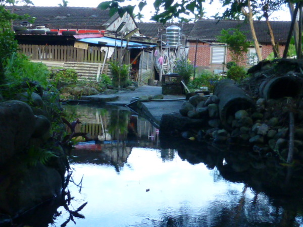 羌仔連埤也在員山,要進去時有一棵野生蓮霧樹結果很多。只是還沒看到泉水就先割捨一下蓮霧,走進泉水池,像到了一處與世無爭的世界。 雖然是一戶人家,可是生機不斷,養香魚種菜蔬怡然自得。他們在最前的水池迫不及待把腳伸進水中,然後很舒服狀聊起天。 我自己繼續走進養殖池那邊,水更清澈,我自己一人泡腳,用毛巾擰把臉,很安閒自己享受寂靜。 不久,我出去大家正好起身走進一幢在水中的別墅,水池很大是典型古厝風水設計,只是水池大過屋子,後山又高聳,所以看似殘破毫無人煙很是恐怖。 據說主人已逝,女主人也就離去,剩下這幢房子孤拎拎在那兒。風水說是池塘太廣後山太高聳,主人命兩不重,壓不過,可能就住得不舒服。 房子好像泡在水中 溼氣過重 對人當然不好 因為在白天也就不怕,水中漂滿大萍。陽光照耀下隱幽美麗。大門很氣派,鐵門敞開看似已很久沒關閉,庭園深深深幾許?在此也散發幾許神秘。 走出大院陽光散落,光影很美,車子開出水池也就結束羌仔連埤之旅,下次我會不會再來我不敢說。 |