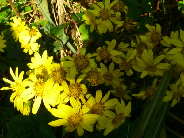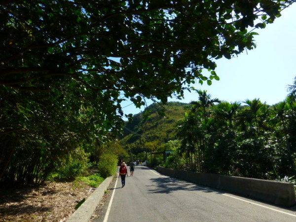 光是拍花就浪費不少時間,到德心宮因一片金黃蟛蜞菊走上河堤,結果看見有人在泛舟。原來是那群年輕人,他們還真是會玩,泛舟搖在溪水上,天氣晴朗加上水流奔騰很適合這樣"溪"遊。 羨慕之餘繼續趕路,到遠望坑時已近十二點,就選在親水公園吃午餐。遊客很多幾乎人手一個便當,有福隆便當,有貢寮阿生月台便當,大家真是內行,吃便當當作草嶺古道的午餐,網路真是厲害,傳得很迅速。 走在路上,我心想日本人也很喜歡接近自然,登山時都是帶野餐,坐在溪流邊或是山凹處吃著自己做的壽司,喝著自己泡的熱茶,每個人的午餐都不同,真是有特色。不像我們千篇一律都是熱賣商品,沒創意。 遠望坑不如以前偏僻冷清,一路建設已見進步和精緻。那戶有一大片梯田的住家還是一樣住著,已經乾枯的荷花田只剩枯枝,夏季前來可見荷花娉婷。 未到入山口就把便當吃盡,因肚子餓每樣菜都很可口。肉片甜不辣酸菜高麗菜滷蛋和油豆腐都好好吃,沒有飲料吃橘子。 包包一下輕了不少,然後繼續出發,走約二十分鐘才到草嶺古道入口,那就是溪水轟轟響之處。夏天這裡的溪水一定清涼無比,走在這裡有水聲有山谷很像我去斯洛維尼亞的運特佳峽谷健行時所見景觀,原來不出國不會體認自己台灣美景之繽紛,出國後更能珍惜台灣風景秀麗不輸國外,見山不是山,最後的眼界即如此。 走進溪流山谷夾雜處,一路幽謐,溪水潺潺,白色水花朵朵怒放,或激烈或輕柔,無論如何自然的力量讓人敬佩。 走過山石階梯後就是石碑的壯盛景點,那就是劉明燈所題的雄鎮蠻煙碑,此碑已裂成三瓣,崩落在大石旁邊。旁有註明,可知為何崩落?因腳痠也麻,所以沒有前進觀看,隨緣起滅也不想多知,知了又忘,多此一舉。 遠望坑街 緊接著都是石頭階梯一路攀登而上,遙遙無止盡,不知那段才停?令人深深後悔早知在家閒遊就好,為何要前來這裡自虐呢。但是自然的清新還是可以洗滌煩躁,再困苦還是值得前往。 從遠望坑往貢寮火車站路上 階梯之後都是濃蔭,走了一下忽現光亮,那就到有洗手間的休憩處。若是繼續走很快到虎字碑,此碑已是贗品,真的虎字碑已經受保護,所以在那東照西照的遊客幾人知道那已不是劉明燈親手所題的真跡字碑。 最精采的景點就要到了,那就是啞口。還沒到就見芒花已翻飛,我們走的就是山谷處,兩山雜生的芒花,因面迎東北季風,寒冷的水氣吹拂造成植物樹林不能生長,只有芒花可以有韌性地生長。此時大家加快腳步,趕緊爬到那兩座可以登高望遠的涼亭,看龜山島的美麗倩影和遠處的海岸線,那是蕾絲邊的海岸線,鑲著白邊,彎彎曲曲,大里大溪海邊,直到龜山外澳甚至想像已到頭城。 山菊盛開 郊野的花最美麗 韌性堅強 山頭風輕吹拂,大家在此讚嘆著,沉靜著。看龜山島守護蘭陽平原的莊嚴和肅穆,天真晴海真藍海龜真寧靜,在此靜定,煩憂拋向大海,那一叢叢的芒花遮蔽在眼前為這冬季的花海翻飛成一個永恆。 下山直奔車站,客棧遺址人去樓空。過往行旅在此歇宿,如今遺址只剩石欄,其餘皆烏有。歷史的痕跡已在竹簡,再繼續往下走就到大里天宮廟。許多香客在這休息吃齋麵,熱鬧騰騰好不歡喜。我們則往後殿尋龍吐泉水,倒滿兩罐泉水,滿意往車站而去,月台上滿是遊客,我則往宜蘭而去。 刻意在第二月台看一下海浪,海浪因夕陽紅光更見美麗。下午四點四十分往蘇澳區間車轟然駕到,隨著黑幕漸漸拉下往宜蘭前進,好像回家一樣自在歡欣。 草嶺古道在黑夜中已完全無人煙,還給山神精靈一個寧靜,啞口那座土地公廟的土地公土地婆應該也出來散散步透透氣了。 PS: 1交通:中壢搭07:48區間車。轉樹林08:43往花蓮區間快。南港09:15。貢寮10:16。返程:大里16:32往楊梅區間快。16:40往蘇澳。 2貢寮阿生便當一個60元。 3寶礦力2瓶50元。草嶺古道自動販賣機礦泉水2瓶30元。 4一路看到的花有:芒花蟛蜞菊九重葛絲瓜花金露花含羞草翠蘆莉黃槿扶桑花山菊等。 馬藍