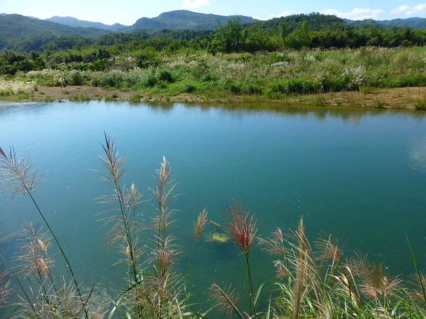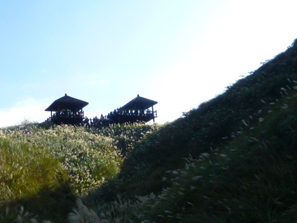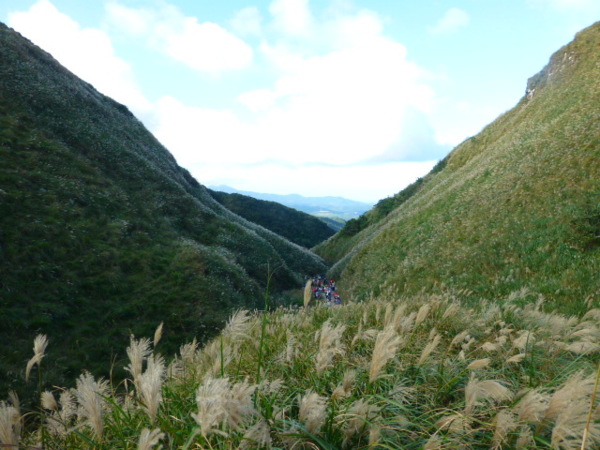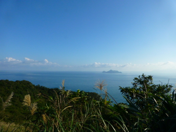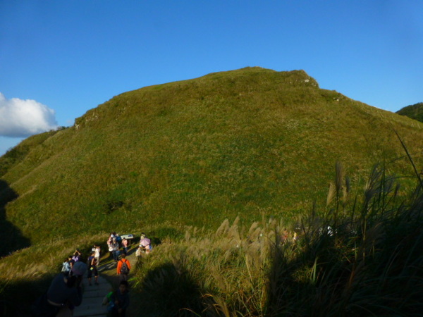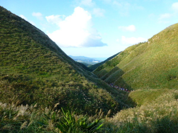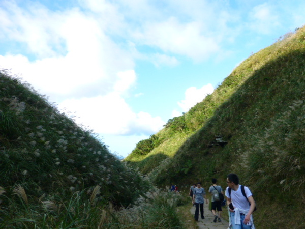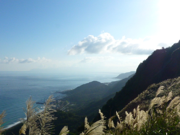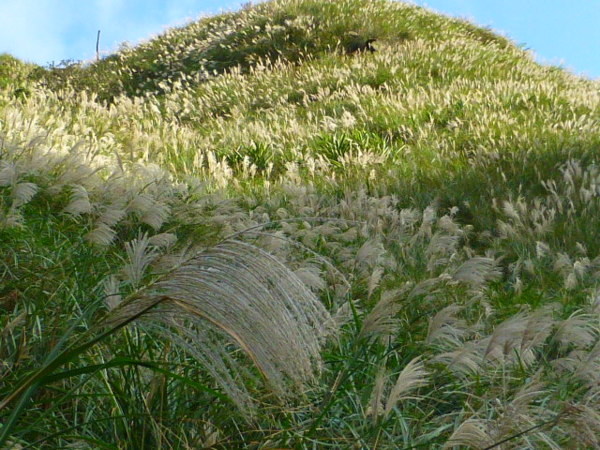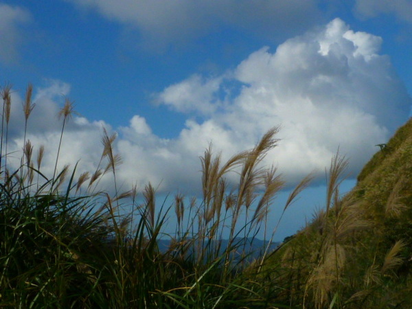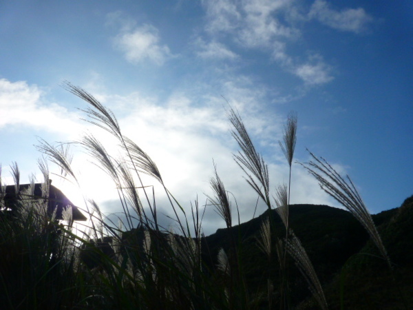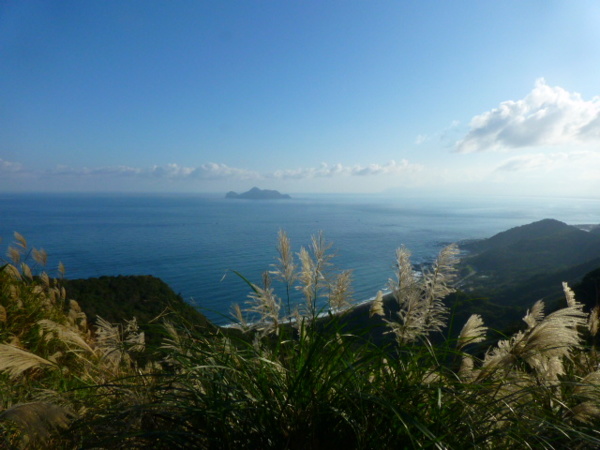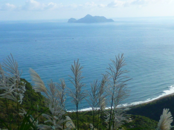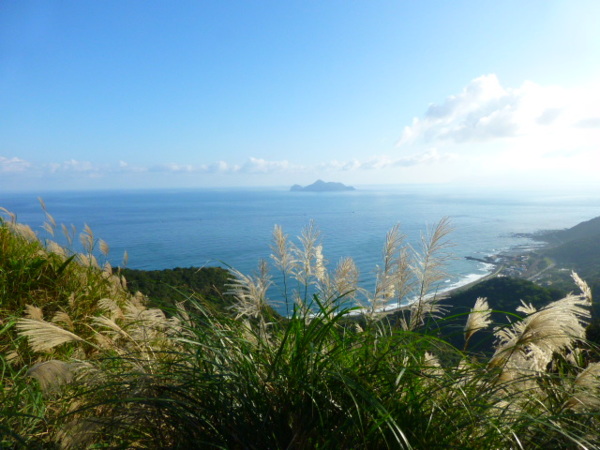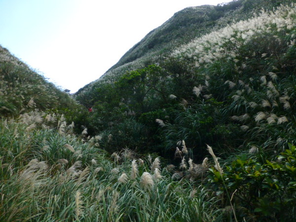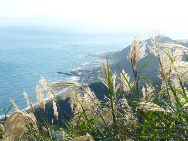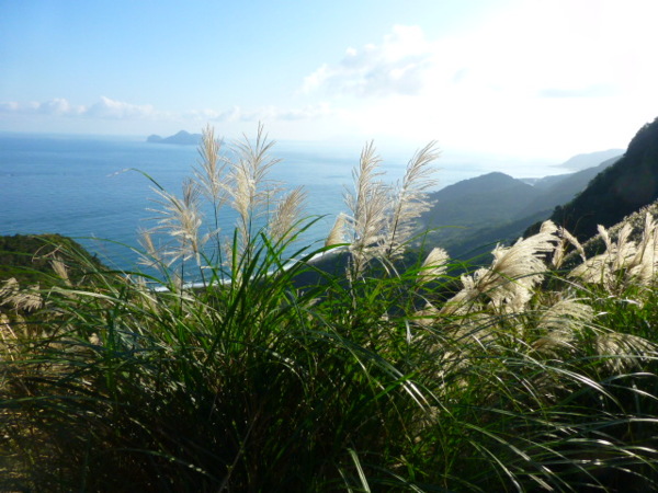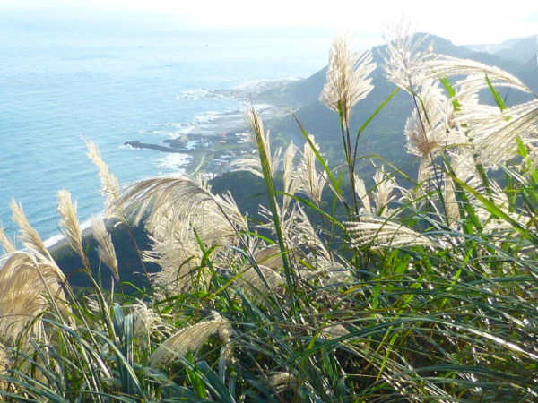 十一月的季節是芒花的日子,山的白頭因芒花而白。所謂青山不老為雪白頭,台灣的冬天不下雪卻因芒花開,山白頭了。 晴朗好天不見得要去草嶺古道賞芒,但我還是選擇了草嶺古道,只因熟悉加上龜山島的身影很美,我又去草嶺賞芒。 搭上早晨08:43從樹林開往花蓮的區間快,一路上乘客說笑聲吵雜盈耳,10:16抵貢寮。一位年輕人好像是主辦活動負責人,言談穩重,一路電話指揮到貢寮時果然一群年輕人聚在車站門口,一輛小巴士停在旁邊。 我去上廁所時,他們依序上車,所有的年輕人被載走後,只剩那位負責人留下。後來我沒注意他去向,我就去排隊買便當。 阿生便當生意越來越好,老闆一直炒高麗菜,一直在煮飯也一直切香腸片。一下是油豆腐沒有了,一下就是甜不辣沒有。香氣一直飄著,飄到馬路。排了三十分鐘後,買到三個便當了。 一隻流浪犬趕快跑過來,我很無奈,因要當午餐就沒辦法跟牠分享。 我們從火車站前馬路一直走去,在未到貢寮國中前彎進地下涵洞就往德心宮方向走去。一路登山客除了我們以外,還有一對老夫妻,還有一對年輕情侶,一路芒花配上清澈溪流,一直拍。 德心宮