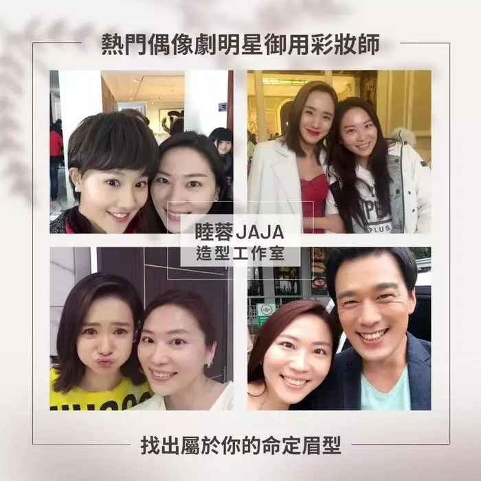 整體造型 老師所參與的劇相當多,台灣偶像劇有「回聲、絕對達令、粉愛粉愛你、兩個爸爸」,大陸電視劇則有「艾米加油、愛的創可貼、杉杉來了、何以笙蕭默、因為愛情有幸福、我是杜拉拉、檸檬初上、老男孩、涼生我們可不可以不憂傷、讓全世界都聽見、艾特所有人」等,還有台北花博展覽會兩個月時裝秀與舞台劇「七七歌仔戲團 春分過月圓彼一工、江之翠劇場 朱文走鬼」等,老師和許多演員合作過,專業素質和技術,讓整體造型不管在哪裡都能發光發熱。