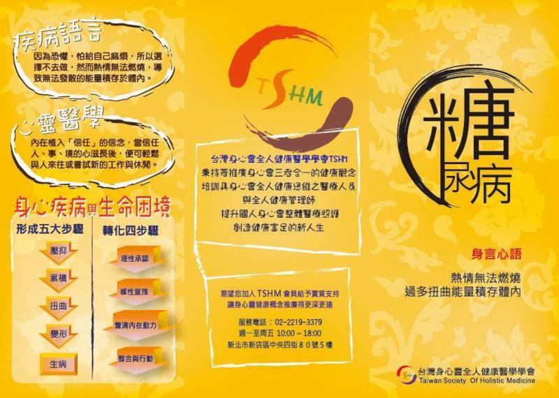 歡迎有需要的朋友與我們聯絡索取 因為衛教DM一張約須4-5元的成本費用 希望大家能慷慨解囊,贊助印製費用⋯⋯ 協助醫學學會製作更多的衛教DM 推廣身心靈醫學,幫助有需要的朋友喔!^^ 電話: (02) 2219-3379 銀行:玉山銀行(北新分行)ATM代號:808 帳號:0901-940-008053 戶名:社團法人台灣身心靈全人健康醫學學會 ※請於匯款單上註明捐款人、電話及地址,以便開立、寄送 基本上意識心充滿了好奇,態度也十分開放。除此之外,它還具備查驗它自己的內容的能力。由於上一個世紀(指十九世紀)的心理學的理論,使得許多西方人都相信意識心的主要目的就僅在抑制「無意識」的資料。 反之,就像我在本章前面所提到過的,意識心的功能也在於「接收」以及「轉譯」那些從內我傳達給它的各種重要資料。在不受干擾的情形下它做得非常好。它接收及轉譯各種印象。可是,問題卻發生在,人們教它〔只〕接受從外界傳來的資料,而對內在知識設下重重障礙。 以上這種情形造成了個人對他所具有的「全部力量」的一種否定,更有甚者,還使得他有意識地把「自己」與「自己這個存在的重要源頭」切斷。這些狀況特別抑阻了創造性的表達,使有意識的自己摒棄了本來可有的源源不絕的洞見和直覺。 「人生沒有彩排,每一天都是現場直播。」一寸光陰一寸金,寸金難買寸光陰。 偶爾會想,如果人生真如一場電子遊戲,玩壞了可以選擇重來,生活會變成什麼樣子? 正因為時光流逝一去不復返,每一天都不可追回,所以更要珍惜每一寸光陰,孝敬父母、疼愛孩子、體貼愛人、善待朋友。 喜歡就該珍惜,珍惜就別放棄。能夠選擇與決定的,就是善加珍惜與把握當下所擁有的。 因為世事難料,緣起緣滅,當下都是真,緣去即成幻,確實也是沒個準的。 為你的難過而快樂的是敵人,為你的快樂而快樂的是朋友,為你的難過而難過的才是你的知己。