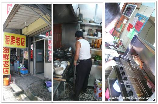 一進入海鮮老店時, 給人的感覺像是到親朋好友家用餐般的親切感, 老闆娘立即打開玻璃櫃的簾子讓我們選用食材烹煮, 並親切的詢問我們要用何種煮法, 並給予適切的建議, 此時的我也好奇的詢問那胖胖長長的像香腸般的食材是什麼? 因心想著該不會是臘味香腸, 而白白的地方像是肥肉? 結果居然是白墨魚肉和它所吐出的黑色沫汁所作成的墨魚香腸, 此時老闆亦稱是自己做的且也算是招牌呢! 同學看著我, 我則二話不說的OK, 就先來份嘗鮮吧。另外我又東張西望看其他客人桌上都吃些什麼, 便看到大家都點的烤墨魚與烤新鮮魚肉, 立即跟進! 連續下來含肥大的炸蚵仔, 我和同學也點了9、10道, 期望同學們都喜歡!
