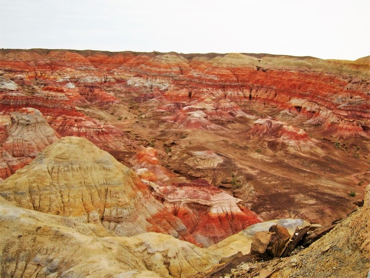北疆之旅真是路途遙遠,每天拉車數百公里,一趟旅程等於環島數十圈,真累人........ 可是每當美景當前,發出讚嘆聲時,大家異口同聲,都說辛苦是值得的! 因為在新疆,無論是大峽谷、大草原、五色灘、五彩城、喀納斯等等, 無論哪一個景,都絕無僅有,在台灣就是踏破鐵鞋無覓處........是絕對看不到的! 上一篇圖文,因為介紹了草原上的花花草草,比較溫婉柔和, 那今天,就請大家分享一些比較陽剛、氣勢雄偉的景觀吧, 它是新疆吉州吉木薩爾縣城北的“五彩城風景區”........ 在一片大戈壁的荒原中,紅色的山體,宛若燃燒的火焰,所以被稱之為“五彩城”,....... 其實,這個荒漠中的神秘、壯觀、的繽紛世界,不是城市,不是鄉村,也無人居住, 它只是一個:由各種顏色瑰麗的頁岩和各種漂亮色澤的泥沙,共構而成的低丘群....... 登頂後有個景觀台,因為不是很高,看起來也不是很險,於是就上去了....... 雖然有點喘,但是,這個壯闊的景觀,真讓人嘆為觀止! 幸好,上來了,幸好,沒有錯過啊! 登高望遠,不一樣的視野........ 啊,像畫家的調色盤吧? 其實照片很多,但很難挑選,因為每一張都很特別、也都很喜歡,........ 就此打住吧,免得又遲疑不決了,.......而且圖片會說話,也不用多加註解和說明了。 這就是五彩城風景區,希望大家喜歡,謝謝分享! |