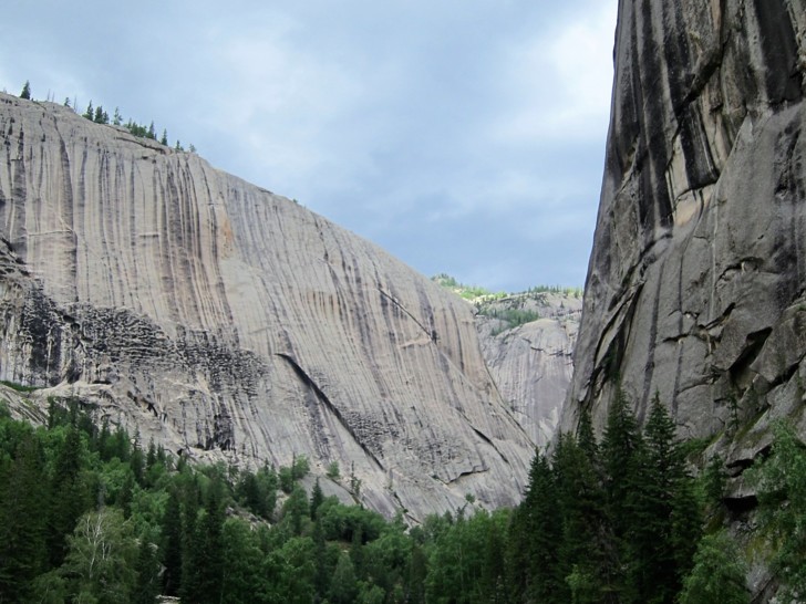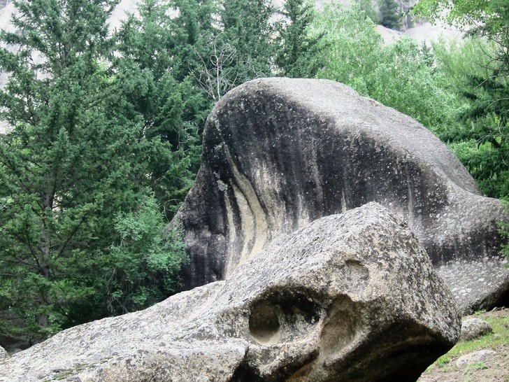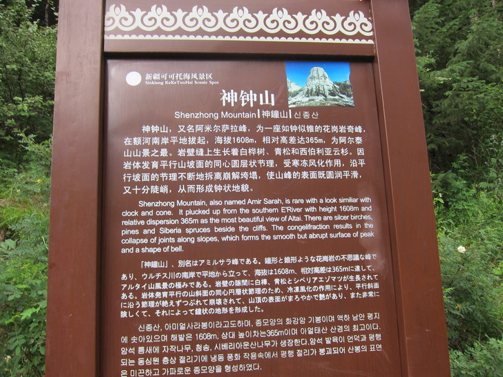 這樣奇特美麗的山,沒見過吧?至少,我是沒見過的。若是小一點的奇石,倒是有的...... 不過,這可是一座可可托海風景區裡的“山”啊,真是不多見呢!也許,我是少見多怪了? 可可托海風景區,位於新疆北部阿勒泰地區的冨蘊縣境內, 由額爾齊斯大峽谷、可可蘇里、伊雷木湖、卡拉先格爾地震斷裂帶組成, 是中國首個以地震遺跡為主的國家地質公園.......前面介紹過三號礦坑,去過可可蘇里沼澤地, 那麼今天來到額爾齊斯大峽谷,就隨意去逛逛額爾齊斯河的峽谷風情吧....... 這是依山而建的可可托海旅遊服務中心....... 雖然已經是初夏,不過還旅遊旺季還未到來,加上廣場非常大,好像有點冷清? 大陸這幾年人民生活水準大幅改善,工作之餘非常重視休閒生活, 每逢節假日,各地風景區人頭鑽動人滿為患,甚是恐怖....... 據說,每年夏天全國到新疆喀納斯避暑的人,多到一床難求, 光是排隊買門票,就得排上好幾個小時,......這樣的冷情,反倒是幸福了! 遠遠望去,那個建築的設計也像一座山,非常巧妙地融入了整個大環境之中,........ 這個廣場是叫作“龍門廣場”,山脈首尾與額爾齊斯河相連,山水環抱廣場、壯闊而美麗! 建築的內部規畫相當的恢弘........ 還沒有落成開放的地質博物館一角........ 這座山,就在龍門廣場一側,與旅遊中心遙遙相對.......... 景區內的小橋流水、花草樹木,都極力保持了原生態的樣貌....... 這個被我叫做“山”的巨石,高約20米,長約35米,形似兩隻大烏龜........ 在這一個圖中,可以清晰看出上面一隻大烏龜抬頭挺胸地護著下面一隻小烏龜, 那個神態充滿唯我獨尊、捨我其誰的自信與激情,而下面那一隻小烏龜呢, 正安詳的依靠在身邊,好像牠的世界只有幸福美滿....... 這個巨石很特別、很有意思吧?它們被當地人稱之為:“萬年情”! 可可托海,哈薩克語是“綠色的叢林”,而蒙古語則為“藍色的河灣”, 正如其名所形容的,可可托海的水是綠色也是藍色的....... 河岸連綿不絕的花崗岩,峰峰相連,峰壁渾圓形態優美, 奇特的山形地貌,是億萬年的“燕山期巨斑狀黑雲母花崗岩”經過長年寒冬的風化作用, 像層層剝蛋殼那樣,不斷循環拆離崩坍......才形成今日我們看到的平滑、陡峭的雄偉山體........ 是不是很壯觀、很美啊? 像個超大號的香菇嗎? 神鐘山 它是一座形狀如一個大鐘一般的花崗岩奇峰,高度達351米,平地拔起氣勢逼人! 它的岩壁縫中生長了白樺、青松、雪嶺雲杉、西伯利亞雲杉等等,被認為是阿爾泰山之最....... 阿勒泰屬溫帶大陸性氣候的寒冷區,春天多風、夏天多雨、秋天涼爽、冬天寒冷而漫長...... 春夏和秋冬之交日溫差極大,所以最佳的旅遊季節是9月底到10月的中旬....... 那時不但氣候宜人,且秋意迷人,不過只怕那時會人滿為患吧? 可可托海風景區所有旅遊資料上,都打著“世界的可可托海”的名號, 也許與他們擁有的三號礦坑有關?也許也是他們的自我期許與努力目標? 不論如何,我對可可托海所驕傲的“原始的魅力、自然的語言”是認同的,....... 在遊客中心的寬大明亮整潔的洗手間,我們看到了這樣的告示: “可可托海風景區提示您:本衛生間採用發泡式微生物生態免沖工藝, 您方便後即可離開,無需任何人為操作。請您不要將雜物投入坑內, 保持室內清潔,請攜帶好您的貴重物品。”