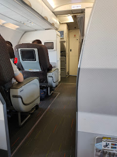 因為劃位時間較晚,又因為同名同姓無法自助報到,機位就由地勤幫我選,沒想到給我一個很大的座位,還可以看著飛機飛行資訊,覺得幸運。