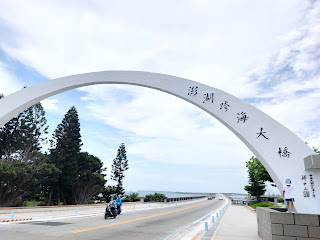 吃完就繼續往前進,跨海大橋蠻長的,海風也大,幾度要把我的安全帽吹走。