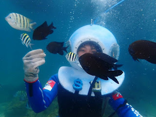 除了海底漫步之外,還有浮潛和跳水,浮潛的部分教練會帶著大家生態解說及餵食海魚拍照