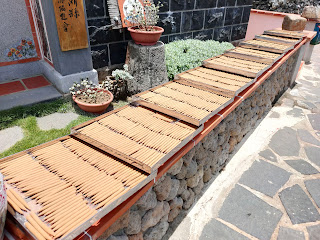 走近時有股淡淡香氣,原來在聚落的小牆上曬著傳香
