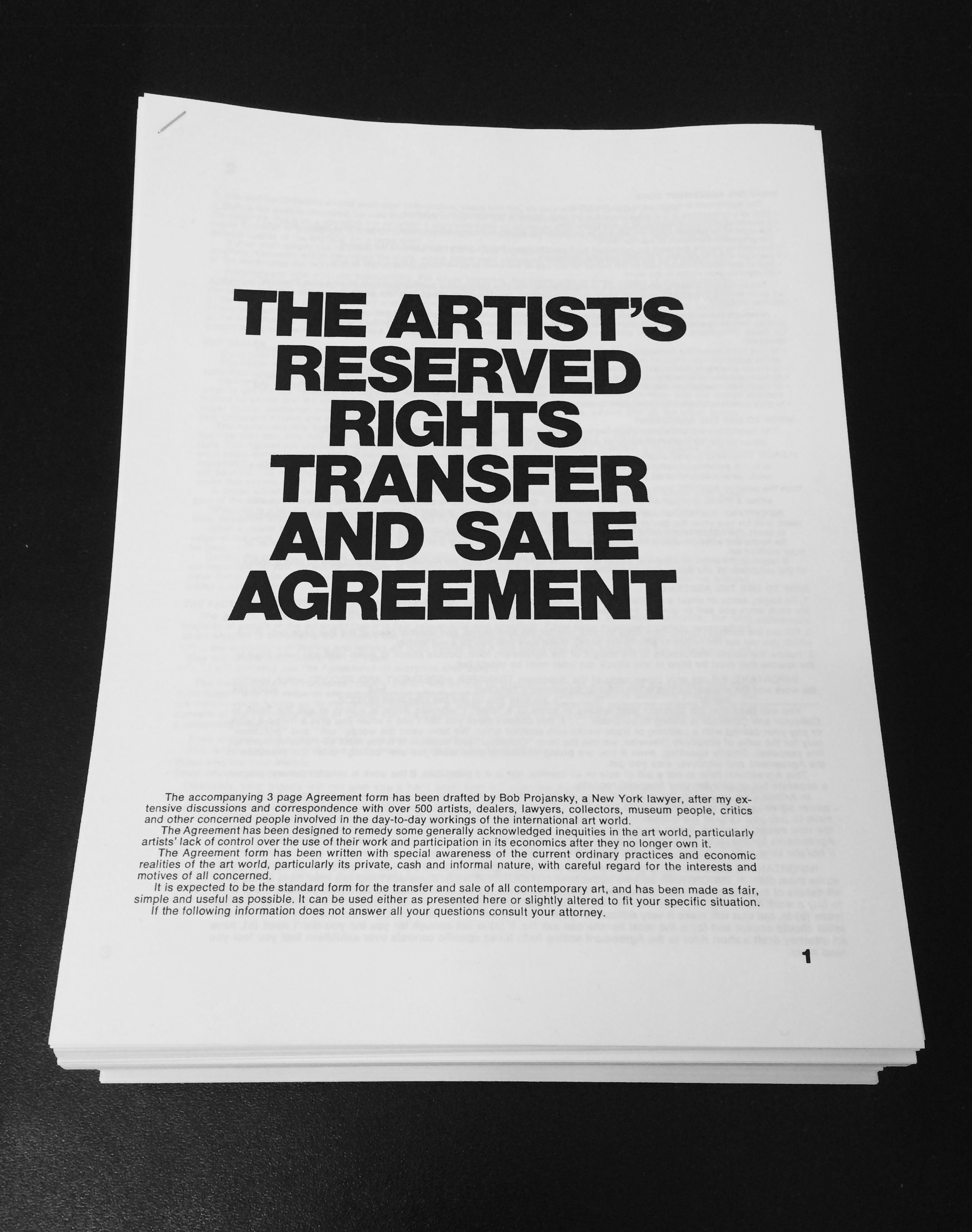 非物質實踐與收入的矛盾 去年初,藝評人瓊斯(Susan Jones)於《衛報》(The Guardian)發表〈藝術家的低收入與地位是國際問題〉(Artists’ Low Income and Status Are International Issues)一文,談及即便在有完善收費制度的國家,藝術家的低工資仍是無解的問題,如研究組織「Paying Artists」在2014年的數據所示,多數當代藝術家都處在最低財務生存底線或低工資的狀態,他們能從自己作品中獲取的「薪資」也不過只佔生活所需的66%(且並非所有藝術家都能以此維生)。在藝術家地位被立法保護的加拿大,藝術家的平均年收入也只達到他們國民所得的74%水準,其中只有43.6%的藝術家是從他們的藝術工作(54%作品銷售,其他來自捐款或補助)獲得收入。而2009年已有政府與藝術家組織共同規定藝術家展覽收費標準的瑞典,仍有60%的藝術家在小型空間展出時沒有獲得展覽費用,或收到低於協議標準的金額。 對於這個特殊的職業現象(創作過程的勞動與耗費時間往往不被計入),仍可見某些政策上的努力,如愛爾蘭自2001年起頒布「藝術家享有所得稅免稅」的法令,或其他國家針對藝術家特有的工作模式,允許以藝術創作成本抵稅等規定,而在某些方案中則特別強調藝術性與非藝術性收入之間的相互依賴性(有些藝術工作通常由非藝術性工作維持),而允許自總收入中扣抵藝術工作的成本。這樣的規範除了實質地協助藝術家回收不可見的勞動成本,另一方面也因藝術家、畫廊無須刻意避稅而虛報銷售結果,使政府機構得以更為正確地評估、計算文化藝術產業的發展狀況。 在民間方面,十年前英國的藝術家諮詢公司a-n首先提出視覺藝術的收費框架,做為藝術家與付費者互相理解的參考依據,除了提供單位預算項目的費率標準,同時也做為自營藝術家計算自己專業費用的工具包,紐約藝術勞動維權組織Wage for Work也有線上費用計算機的功能。但上述方法對於較無法在市場中流通的類型(如觀念、行為或其他實驗作品)來說,似乎還需要其他應對方法,此類討論也許可回溯至1971年由美國畫商、觀念藝術推廣者西格勞博(Seth Siegelaub)與律師波簡斯基(Bob Projanski)起草的〈藝術家保留轉讓權利與出售協議合約〉(The Artist’s Reserved Rights Transfer and Sale Agreement),其目的是希望適應任一種藝術生產(即便沒有可見的物質生產)以維護藝術家本身的權益。其中最顯著的例子是藝術家出售作品後,可以從未來每次作品轉售中獲取15%的金額(類似規定已通過歐盟決議,但由各國法律自行規定),藝術家亦有權得知或否決作品未來展出、安裝的狀態,這些規定甚至延續到藝術家死後配偶仍擁有21年的權利,而這些條文另一方面也避免了作品被過度炒作或錯誤展示而導致藝術家聲譽損害等情形。
