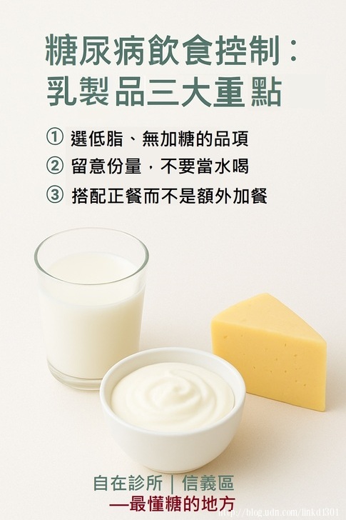 很多人早餐少不了一杯牛奶或一盒優格,但糖尿病飲食控制時,乳製品不是不能喝,只要抓住三個重點,就能喝得安心、吃得開心。 ① 選低脂、無加糖的品項 ② 留意份量,不要當水喝 ③ 搭配正餐而不是額外加餐 想喝乳製品沒問題,只要挑得簡單、喝得剛剛好,日常也能輕鬆做到好控糖。