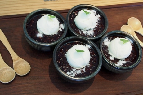 伍参港的無菜單料理,除了食材新鮮(才進港的在地新鮮漁獲)和美味,食器也發揮加乘效果。菜色以海鮮為主,找來陶藝家徐博正設計的食器,不乏取材魚造型,東北角海岸常見的單面山和龜山島也巧妙嵌入,還真是視覺與味覺的雙重洗禮。 不惜重本,吳世聰為了開伍参港餐廳,特別買了一台四十萬元的蒸烤爐,就為滿足旅人挑剔的味蕾,料理出的菜餚果然湯鮮味美。無菜單料理菜色包括:擺盤極美的生魚片(上圖)、料多的茶碗蒸、以烤透抽和烤松阪豬搭檔的海陸雙拼(四圖)、冬瓜醬滷肉飯…等,當中主角便是汁多味美的烤紅喉(三圖),並以紫米冰淇淋作結。