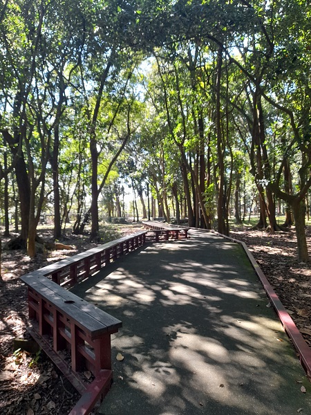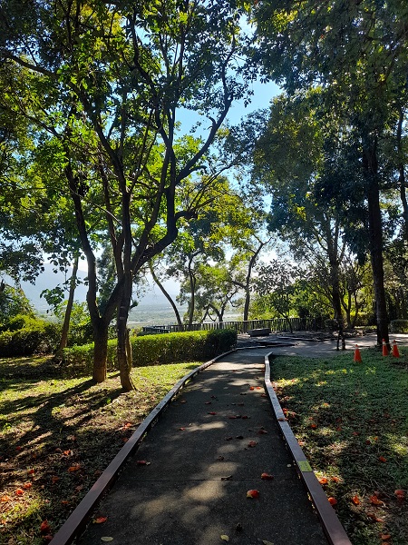 新威森林公園海拔雖不高,眺望絕佳,林緣就闢有木棧景觀平台,喜愛登高望遠可登上茂管處闢建的觀景台,眺賞荖濃溪與新威大橋風光。森林茂密觸眼皆綠是新威最大魅力,不少南部民眾呼朋引伴前來遊步道,並在林間享受野餐閒談樂。林蔭下闢設的木棧道是拜訪森林最佳漫遊路線,棧道沿線則規畫有可供休憩歇腳座椅,讓遊人在微風中享受森林趣。 喜愛騎鐵馬拜訪森林,這兒闢有坡度和緩的自行車道,地面並繪有鳥禽圖案與公里數標記,可供遊人自在踩騎優遊賞綠。新威除了賞綠也可賞花,初夏有桃花心木花開,六月下旬可見火紅如巨傘的鳳凰木艷開,三、四月則可賞花旗木花開丰采。
