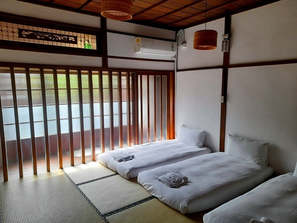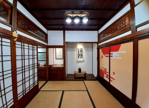 「竹苑」以1930年代的屏東老地圖,做為壁紙妝點客廳牆面一角,復古懷舊氛圍立現,小小的起居間陳列有書籍營造家的感覺。儘管民宿位處熱鬧的勝利路邊,狹長的庭園成為日式民宿與馬路的緩衝帶;「松苑」營造的是飛官的家,從客房吊燈到起居間均可見飛機元素;「梅苑」在三棟民宿中空間最大,可容納9人住宿。臨街的塌塌米房靠窗廊台,設置有茶席座位,讓旅人享受優閒時光。