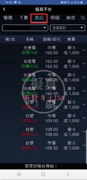 最近不管是電視廣告還是網路平台,一直看到擬真交易的廣告吧~ 沒錯~是有好康的活動唷~ 體驗逐筆交易,參加模擬的下單活動,就能天天抽好禮 擬真交易不是實體下單,所以下單的股票不會進行交割,而是利用模擬的情境進行體驗下單,所以可以放心地進行模擬體驗下單喔 逐筆交易委託種類有那些呢???