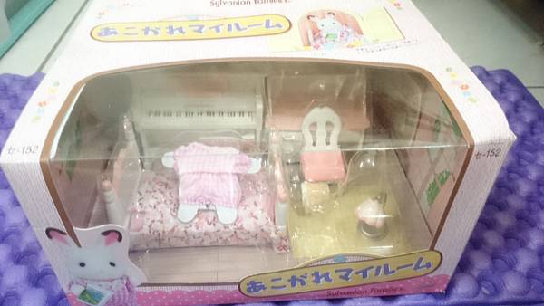 在尋找小貓熊的時候看到這個粉嫩色系的組合, 床鋪+書桌+鋼琴,白色搭粉紅色, 簡直就是女孩兒心中的夢幻房間(眼睛冒愛心💗), 既然在現實生活的媽媽我已經不可能擁有了, 那就讓森林家族成全美夢吧! 購入價:露天拍賣550元,運費60元。 賣家說盒子狀態不是很優,所以便宜賣。 外盒,可以看到床上還有一件粉紅色睡衣。