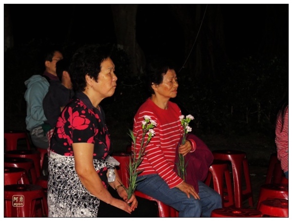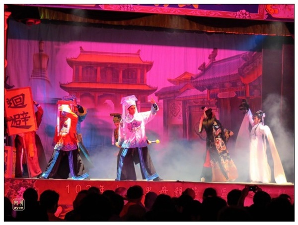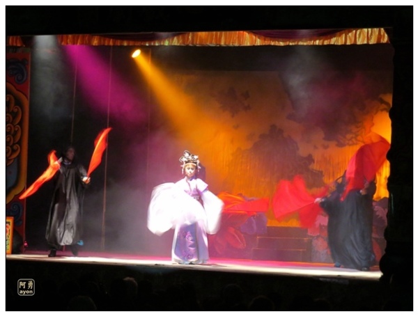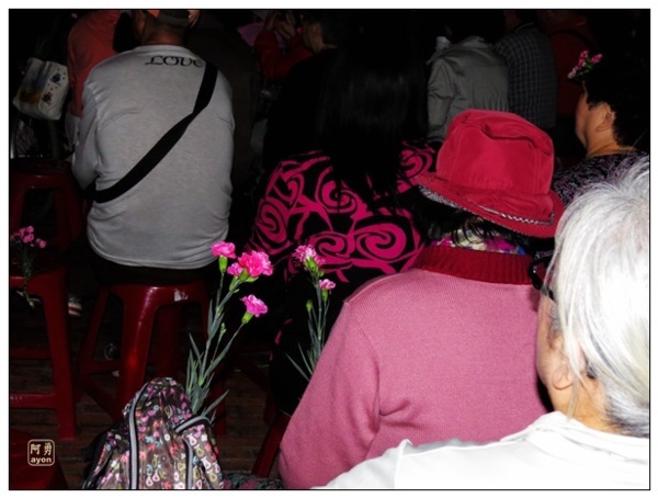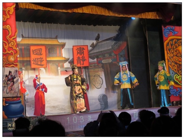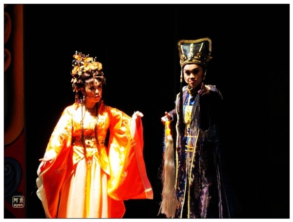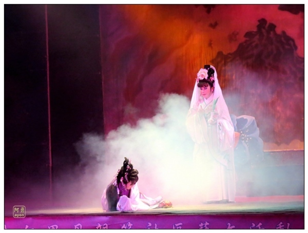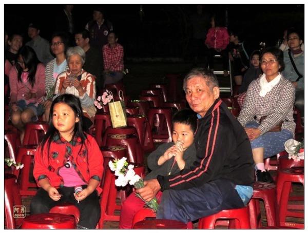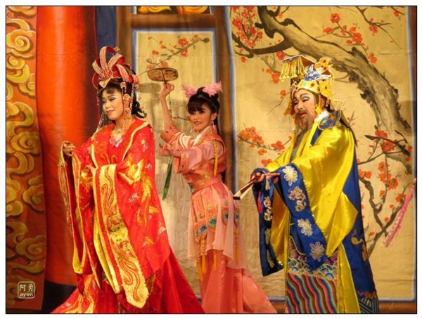 一心歌劇團於台北市社區舉辦的慶祝母親節活動演出的《賢臣迎鳳》,是依據狸貓換太子的故事所改編。狸貓換太子是描述宋仁宗趙禎出生時,被劉太后以剝了皮的狸貓掉包,而被丟入河中,後來由包拯(包青天)平反的故事。這個劇情,幾乎每個歌仔戲劇團都有一套演出腳本。 一般歌仔戲都是配合廟會巡迴各地以野台戲的方式演出。最近,情況有了改變,像這齣戲,一心歌仔戲團曾於臺北中山堂售票演出,也受邀於社區舉辦的慶祝活動中演出。 這齣戲不論從編導、演出、舞台、燈光、服裝、甚至音效,都有很高水準,十分敬業。印象最深刻的火燒碧雲宮場景,以揮灑紅旗的黑衣人加上燈光、音效、煙霧效果,驚心動魄的場面,震攝人心。 現場看到許多母親手持康乃馨專注看戲,我認為,這就是最好的禮物了。母親節那天,除了帶母親去外頭用個餐,買個蛋糕說聲母親節快樂之外,讓母親靜靜的看場好戲。 兒子就讀台灣藝術大學戲劇學系,這學期修了歌仔戲課程,我問他,可以做出一場歌仔戲了嗎?兒子說,還不行!光口白的發音,就摸索了好久、好久......... 呵,兒子呀,慢慢學吧!看似簡單的歌仔戲,裡頭都是學問、學問呢...........