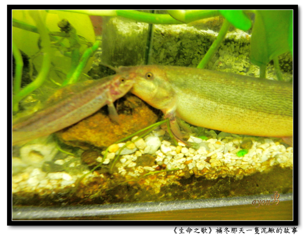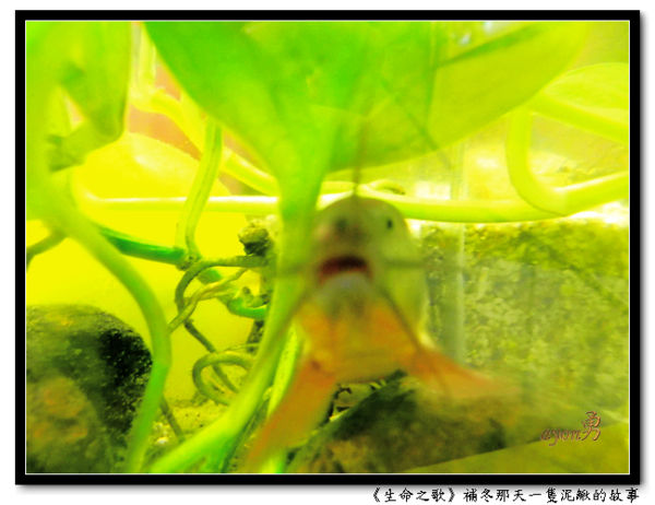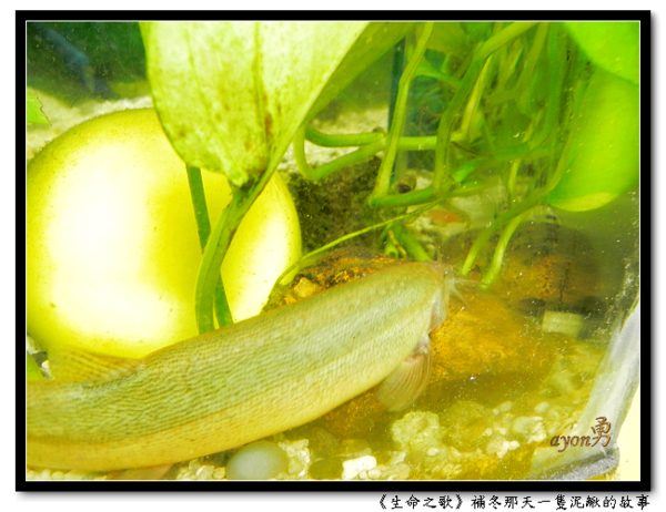 補冬那天,我到市場買菜。經過一家魚攤,賣著活生生的泥鰍,攤商說,可以買回去燉補。我詢問了價錢之後,買了兩尾。攤商一邊打包,一邊告訴我搭配什麼料,怎麼燉。我根本聽不進去,只想趕快回家,將泥鰍放進我的水族箱。 一個魚缸放了兩尾大泥鰍(長約18公分),實在有點擠,隔天朋友來了,我要他撈一尾回去養。他們家中庭,有個大魚池。 泥鰍在魚缸裡自在的優游,偶爾跟其他魚兒玩玩。客戶見了也好奇,泥鰍怎麼來的?我笑稱,從別人家的餐桌跑過來的。 so what?(那又怎樣?)正如黑月曾經在公務路過的街上搶救一隻被遺棄的貓咪(小不點),後來送給友人,後來遭到交通意外。黑月悲傷的說,救回它,只是多延續幾個月的生命。http://blog.udn.com/blackmoon/2357632 (回應13格友) 我的想法是,一想到這隻泥鰍將活生生的被蒸煮,我就給它買下來了。至於活多久?天曉得,說不定活得比我久呢。哈哈哈~ 這首《勇敢向前行》,安排在生命之歌第16號作品,節奏比較強烈一些,那就是行動、律動的節拍。走吧,走吧,我們同在一起,積極勇敢的向前行。 這首歌還沒填詞呢,我在等黑月。