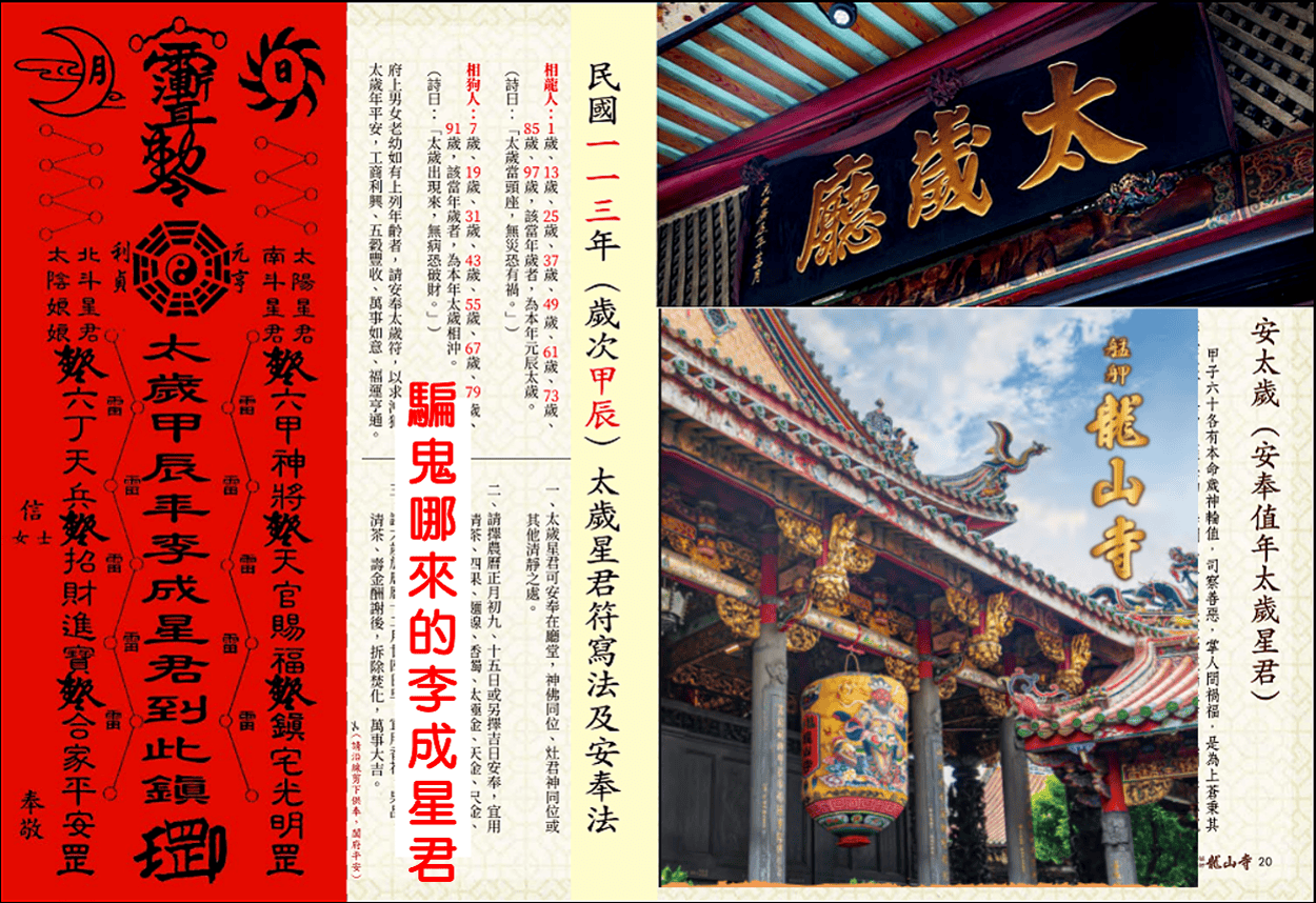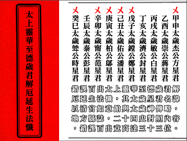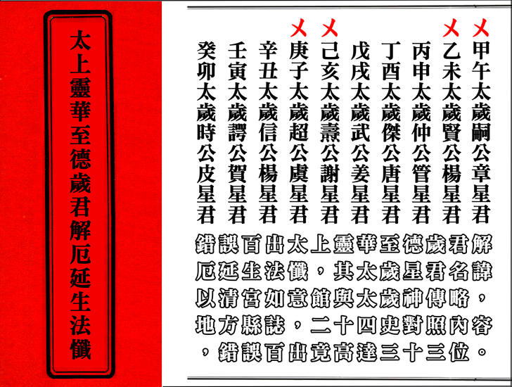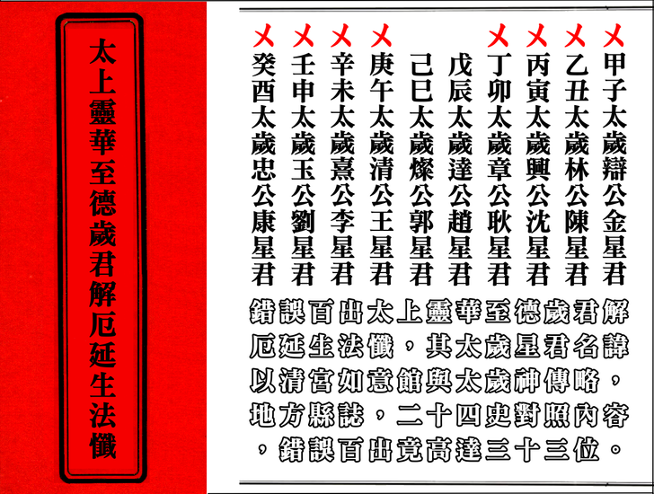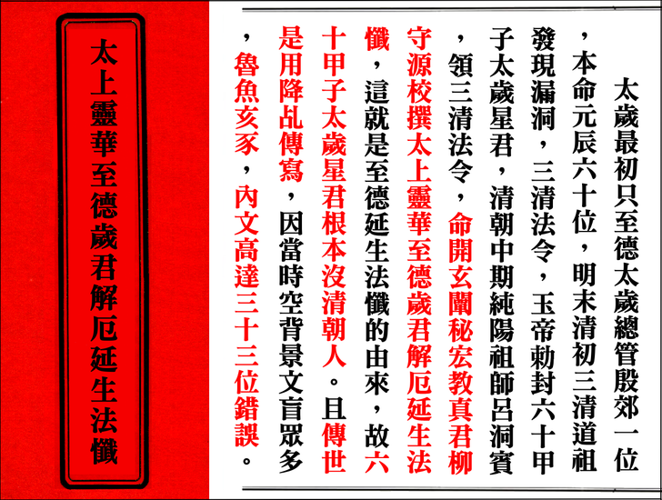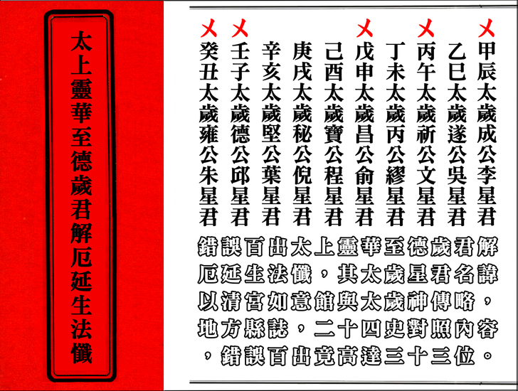 蕭登福於2014年3月21日「太歲神信仰講」公開發表學術論文,推薦表示太上靈華至德歲君解厄延生法懺是目前兩岸三地唯一找得到最完整的呈現,真的如此嗎?文化大革命北京白雲觀元辰殿裡金身全遭到破壞,中國道協根據清初清朝宮廷宮如意館所繪六十甲子太歲神畫像,請北京工藝美術廠從塑金身,也就是現今各廟宇內六十甲子太歲神金身的可靠正確正版來源,故清宮如意館版本更完全否定推翻蕭登福的說法是完全錯誤。搞清楚太上靈華至德歲君解厄延生法懺是在清朝中期校撰而且流傳至今錯誤高達33人,台南鹿耳門天后宮睡覺採用他的版,根本是不識字不懂法,故意欺騙大眾,難道都不考校歷史始末,對錯來源嗎?錯誤百出達33位還推薦個屁,一堆文盲,光以明末清初道教神仙畫集版本就完全打臉其說法,完全錯誤百出,實不可取真騙死人囉!更李毀謗上界敕令太歲神傳略難怪你會翹辮子。