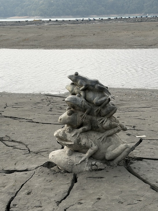 兩年前枯水期,9蛙完全現身,如今底下的3隻卻被泥沙淹沒;哪來這麼多的淤沙,一直都是如此,亦或水的源頭出了啥問題...