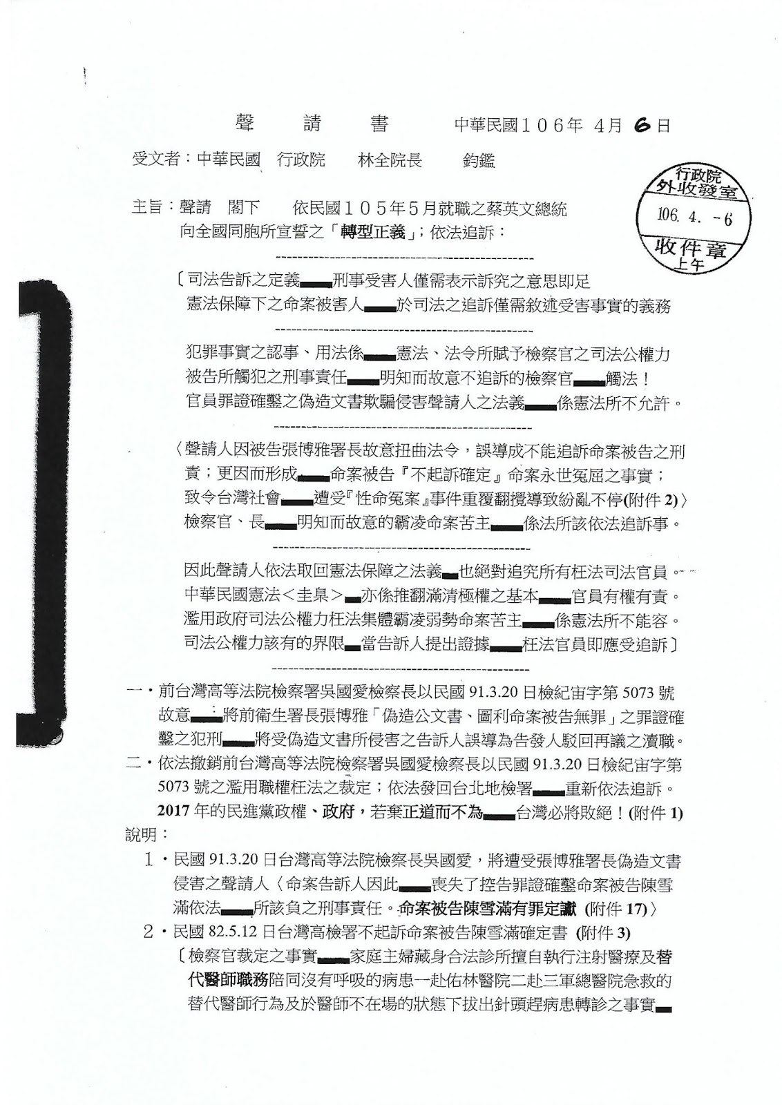 〔20180131特註: (民國106.4.6日在下的聲請書)