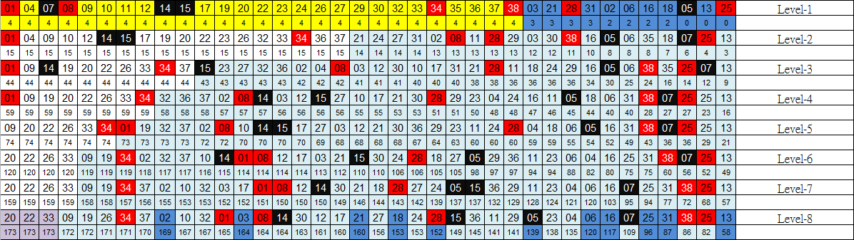 2014-2-14(五)大樂透號碼加權分佈圖表