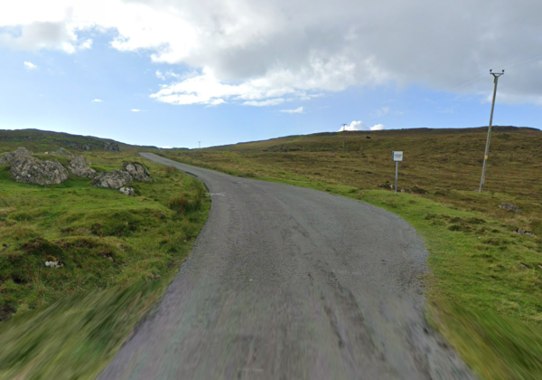 蘇格蘭天空島的單線小路,路肩有半橢圓的會車點 passing place。