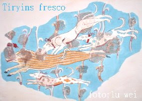 關於泰琳薩這個距今3千多年的小王國,我們至少有3方面的資料可查,其一是考古學家從遺址裏發現的文物,其二是荷馬的史詩(提到城牆高聳,古名Τίρυνς的王國);還有一個很重要的典籍,就是西元二世紀,羅馬帝國時期的”旅遊家”保薩尼亞斯(Pausanias)所寫的”希臘見聞錄”。只是Pausanias雖到過泰琳薩,但當時那裏已是一片漫草荒煙,恐怕連古王國宮門在哪他都没搞清楚。