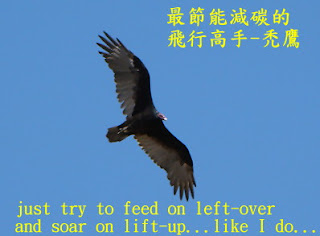 | 和蜂鳥一樣,Tanager 這種鳥只有美洲大陸有, 小農場上至少還有3種黃色的鳥,其一是早春就會報到的Meadow Lark,我在墨西哥也看到過。 另一種每年春天在小農場築巢,抱蛋,哺育後就走人的是黃鸝(Oriole), 盛夏和初秋季節二哥野鳥園裏最受歡迎的有机食品是葡萄 ! 山前山後種了好几種,每年成熟時也是人吃不如鳥吃的多,曬成乾不如當鳥食來得快 ! 在所有這些鳥房客裏,抓蟲技術最強的就是屬於覇鶲家族(Tyrant Flycatcher) 的兩種Phoebe。 不過在這個小農場的小鳥園裏,二哥最景仰的既非色彩艷麗的 Tanager,亦非捕蟲高手Phoebe,而是有山林清道夫美名的禿鷹。迪斯尼的卡通把這鳥畫的面目可憎,我也絶不會說這鳥有什麼可愛,但是不可否認的是禿鷹有驚人的辦事效率 ! 只要有死屍,不管是在東山的山頭,或是西山的山谷,不管是病死的小牛,土狼吃剩的雞、鵝,或是被我逮到的地鼠,這些禿鷹都能迅速從空中察覺,立即採取行動,在最短時間內把死屍清除乾淨 ! 鳥界若要頒發資源回收奬,金牌當然非它們莫屬 ! 若能如此節能減碳,御風翱翔,就算面目可憎,偶願意 ! 偶願意來世作禿鷹啦 ! |