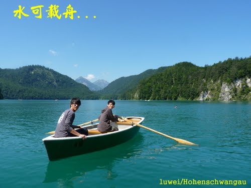 遊新天鵝堡可不能只進去繞一圈,認識一個只顧自己樂趣(品味?),不顧國家朝政的國王 – 雖然Ludwig II為百年後的巴伐利亞,帶進億萬(觀光)財富,但那到底是無心插柳,非其初衷。遊完堡 – 如果是我安排的行程 - 一定要去新天鵝湖畔走走,尤其是秋天,色彩最美……就像明信片上一樣。天氣好,會划船的(呵呵,就是偶啦!) 就租個小船遊湖;能游泳的(還素偶啦!) 就脫光了下水滌身。 這回帶師大附中的少年仔 - 入行來碰到最年輕,最活蹦亂跳,卻也是最數位化的一群 – 白天離不開手機、耳機,進了旅館又立刻得接上網路……什麼 Ah so! Ich sage Ah…aber nicht so! 回台灣我要管也管不著,想愛也不愛不到了! Mit mir, hier in Bayern……喂! 少年仔! 跟我到了這麼個青山綠水的地方,咱們把耳機,手機,遊戲機都丟進水裡吧! Ja! Ja! Sicherheit, immer die Sicherheit – 別以為我不擔心,可是安全也不是咱們簽個字就保證的了的。失掉這個在台灣(台北市)很難找得到的機會……找回你們不需要那些個小機機,還是可以快樂的機會,偶會很自責呢! 感謝游泳隊的弘喬……嗯! 自己游回來的,好小子! 附中之光! 台灣希望! 其實我很能享受孤舟蕩漾,天地自得之境喲! 但總是帶著一群人,又難捨分享之心。帶2個人(我若有10雙手,當然會把整團人都帶上去!),一起從湖心欣賞(新天鵝堡和Hohenschwangau堡的)全景,本還想像當年在鷺鷥潭,蕩到松林崖角,然後收起雙槳,任船悠蕩…… 大伙一塊兒作個路德維二世國王(Ludwig II)的大夢…… 可是太陽實在烈到不行,還是划到有樹蔭的南岸…… 慕尼黑前2天也暑氣襲人,不能在年輕人前灌啤啤,卻也多了個深度逛美術館和博物館的藉口,有冷氣吹,還跟著我跟著當年的藍騎士 Blauer Reiter 几位大師們黃牛紅馬,藍綠人生。 |