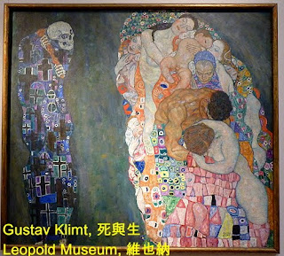 克林姆特在自己的兄弟公司還待了蠻久的 - 從21歲到30歲(1883 – 1892)。 除了前面提到的提到的KHM 迎賓台裝飾之外,他們接了很多如捷克境內(Karlovy Vary, Liberec)的劇院大廳裝飾,義大利、羅馬尼亞等地的豪宅裝飾,還有維也納國家劇院(Burgtheater)等大案子。和同一個年代的許多藝術家比起來,他們絶對算得上才志兼得,名利雙收。 比如這幅維也維李歐伯美術館(Museum Leopold)蒐藏展出的”生命與死亡”,先不論其美學和心理學的層面,光是那死神的長袍,就讓我直接聯想到拜占庭風格(希臘/俄羅斯正教)的聖人肖相畫。而這只是克林姆特很”拜占廷”的舉例之一。 名利雙收的Klimt 卻因為之後的畫風不合維也納上層社會的”古典”要求,而遭否定,甚至打壓。分離 – Secession – 何只是畫風的不同? 分離不也是(細胞)分裂之後的再生嗎? 什麼分離派? 儘管我蠻欣賞Klimt 的創新和執著,但是分離派(和Art Nouveau)等裝飾藝術…嗯! 其實很…pas vraiment de mon gout – 不大合我的胃口。咱們一不高層,二不爆發(les Nouveaux Riches – pour ceux qui comprennent),和分離好像也還有些分離…… 維也納分離派噢! 我的感覺和同一時期,也來自奧地利的畫家 – Albin Egger-Lienz (1868-1926) 對他們的批評一樣 – 裝飾有餘,深度不足! 維也納…嗯,就是醬子打壓藝術家,才打出了那麼多亂子啊... |
