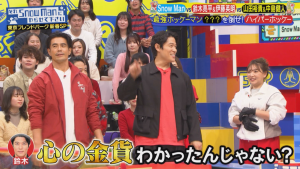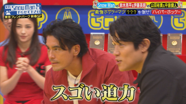 14.最後的冰球對決環節,有兩個神秘嘉賓擔任蒙面人來做三隊的對手,其中一人跟新選組隊對決前,透過主持深澤傳話,吐槽山田裕貴先前說「(跟隊友們默契十足)已經拿到心靈的金幣了」,嘲笑他不過是銅幣,二邊就此槓上,下一個上場的《重啟》隊打敗蒙面人時,鈴木亮平就說:「這下你明白什麼叫心靈的金幣了吧?」(山田裕貴不禁感動地說:「謝謝~」) 結果蒙面人的反應是(依然透過深澤傳話):「給我水~~~~」XDD