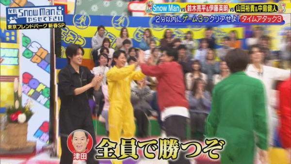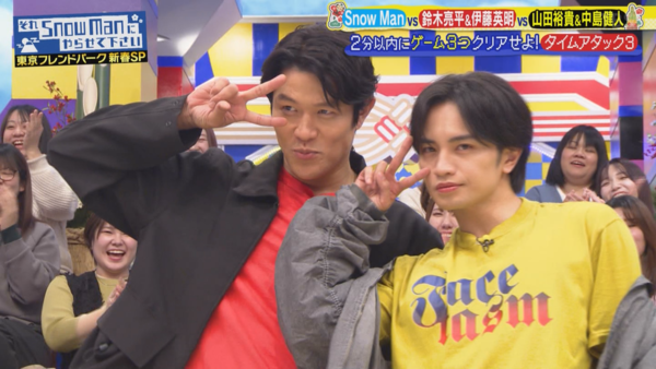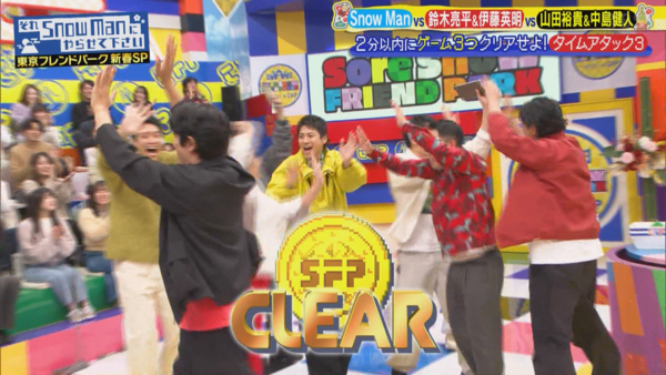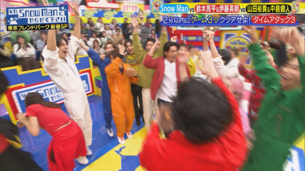 這個長達四小時的新春SP真的非常歡樂,從頭嗨到尾,完全就是永久珍藏版! 下面紀錄一下感想: 1. 第一次完整看完雪人主持的節目,發現每個成員都很有個性也很有趣,跳舞很帥、搞笑很有梗,運動神經也很強。特別是主持人深澤辰哉,光看外表其實不會特別注意到他(毆飛),但他主持台風超穩,示範遊戲也超強,幾乎都輕鬆過關,讓我對他刮目相看。