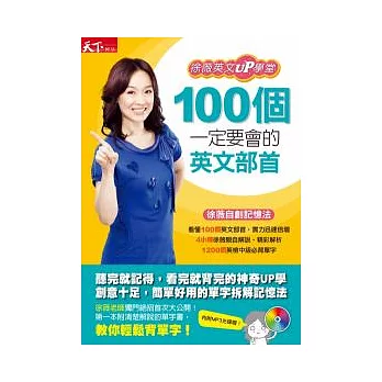 100個一定要會的英文部首:徐薇英文UP學堂(附MP3)購買網址:http://www.books.com.tw/exep/assp.php/87926/products/0010493367?utm_source=87926&utm_medium=ap-books&utm_content=recommend&utm_campaign=ap-201706