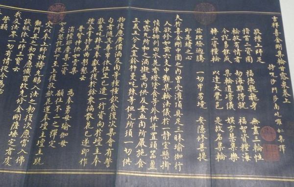 ▲但上二黃金抄經,字體都嫌小,要抄成下方正常課誦本之較大字體才有力▼。金色顏料之大字,不輸純金抄的小字。可先用金色顏料抄成大字本,花費低廉又大力。血液經也一樣,字體太小都會不夠力。