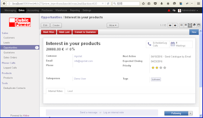 和潛在客戶經過電話與會議接觸後, 就要進入報價階段. 免費的開源軟體OpenERP 可以很快的將機會轉為報價單傳給客戶.