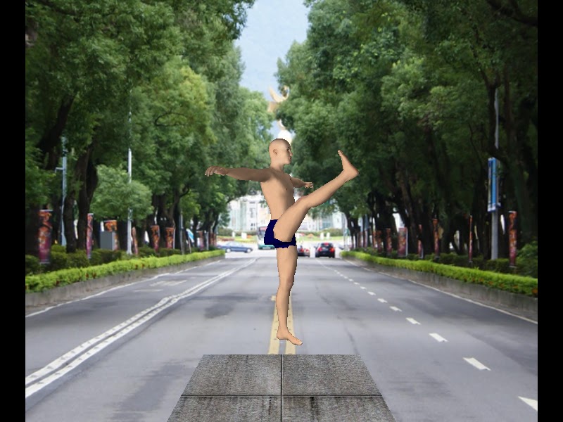 我們的城市酷俠M 出場了 酷愛武藝的他 不會放過任何 練習的機會 一臉酷酷的酷俠M 一出來就來一段旋風腿 the Muscular Robot-SkinSuitBotM shows the 180 degree Roundhouse KickLet's take a look at the Muscular Robot-SkinSuitBotM. It is capable to do lots of the physical fitness movements. He it shows 180 degree Roundhouse Kick:可以光轉身旋轉踢出右腿 We can swing the right leg only.然後在轉身提左膝再踢右腿 Or we can lift the left knee first,and sweep the right leg.