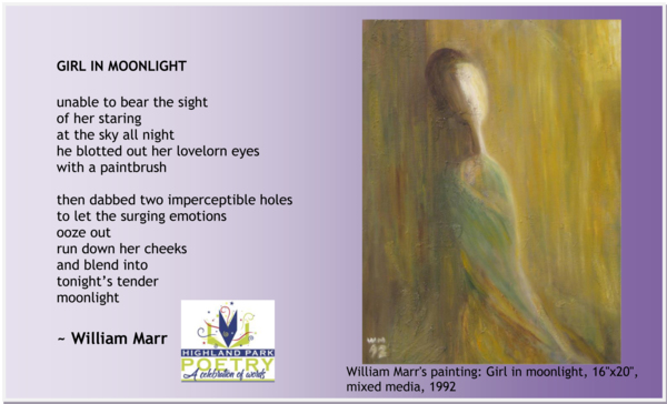 英文詩及畫作〈月下少女〉張貼於高地公園詩臉書頁,2021.12.29
