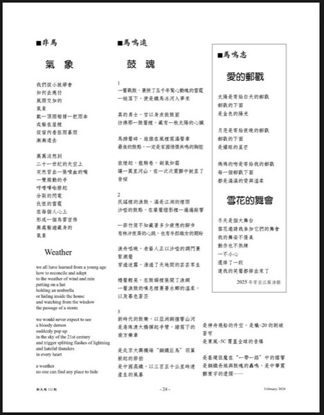 雙語詩〈氣象〉刊登於《新大陸詩刊》