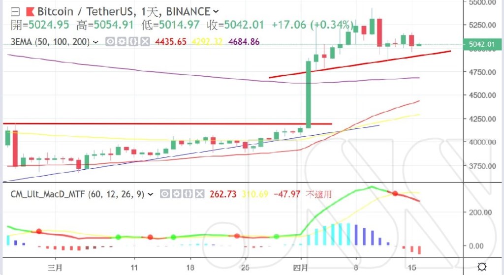 文前聲明!本資料僅供學習參考,不構成買賣建議,據此買賣,後果自負。 交易本質為買賣雙方皆需要有人交易;讓交易人“買在最高點”與“賣在最低點”。 這是主力操作與媒體趨勢風向所致;因此,點位非絕對,跟著點位掛單,只是方便主力集體收割! Pre-text statement! This information is for reference only and does not constitute a trading recommendation. The nature of the transaction is that both buyers and sellers need to be traded;Let traders "buy at the highest point" and "sell at the lowest point". This is due to the main operation and media trend;Therefore, the point is not absolute, followed by the point of the pending order, just to facilitate the main collective harvest! 【OKEx BTC合約持倉量多頭反超空頭 ETH合約持倉量明顯增加】 截至4/16 8點,OKEx比特幣合約精英帳戶中,多頭平均持倉比例為19.10%、空頭平均持倉比例為16.23%,較於前幾日空頭佔優,今日多頭重新反超空頭。 以太坊合約精英帳戶中,多頭平均持倉比例為22.89%、空頭平均持倉比例為15.42%,多頭持倉繼續佔優。 當前BTC合約持倉總量約為6.34萬個BTC,持倉量增加;ETH合約持倉總量約為79.57萬個ETH,持倉量增幅明顯,增幅9.79%。 BTC: 在過去的24小時裡,價值近70億美元的比特幣已經轉移,有130萬枚比特幣已經易手或更換了地址。每小時有超過25億美元的資金在流動,平均交易額為2.2萬美元,而中位數為100美元,這意味著價值低於100美元的交易數量與價值高於100美元的交易數量大致相當。 其中100筆最大的交易共轉移了大約8.5億美元,即16.5萬比特幣,僅略高於全部轉帳的10%。 這可能表明,大多數交易不是交易所或其他大型實體,而是普通個人在商業中使用比特幣,進行國際轉移或交換價值。 市場橫盤之際,傳出幣安將於4/22下架BSV的壞消息,引起一輪資金換幣提現潮。 逢日線頂背離向下,期貨多空單反超之際,回踩插針測試支撐。EMA50持續往右上走,行情看漲,插針回調,以不破前低點的狀態下,建議買入。 In the past 24 hours, bitcoin worth nearly $7 billion has been transferred, and 1.3 million bitcoins have changed hands or changed addresses. More than $2.5 billion in funds are flowing every hour, with an average transaction volume of $22,000 and a median of $100, which means that the number of transactions worth less than $100 is roughly equal to the number of transactions worth more than $100. . The 100 largest transactions have transferred about $850 million, or 165,000 bitcoins, just over 10% of all transfers. This may indicate that most transactions are not exchanges or other large entities, but that ordinary individuals use Bitcoin in business for international transfer or exchange of value. At the time of the market sideways, the news that the money will be released from the BSV on 4/22 will cause a round of funds to exchange money. On the top of the line, the top of the line is facing downwards, and the futures are mostly empty. When the contrast is on, press the pin to test the support. EMA50 continues to go to the upper right, the market is bullish, the pin is adjusted back, and it is recommended to buy without breaking the previous low. 原圖連結 (Original link) 放大觀看