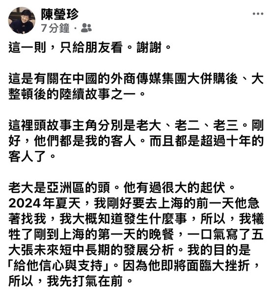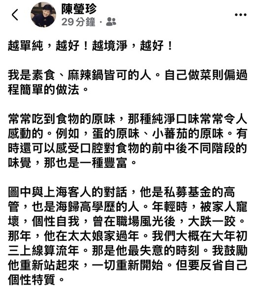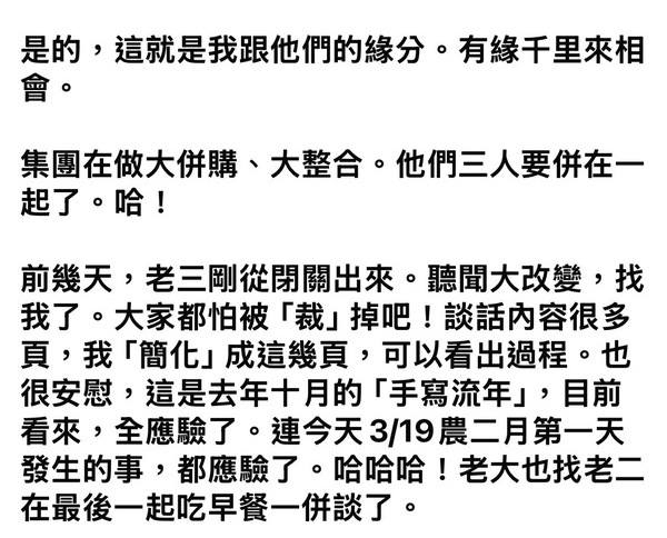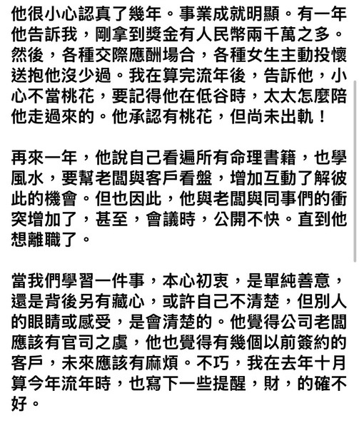 哎!我後來就不願在這件事上 多回覆他了 他思考角度永遠只在利己角度上