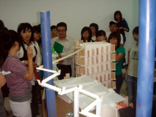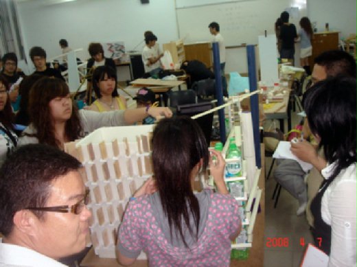 工業設計學系96級大一趣味設計,於 04 07 的設計基礎課堂上進行本學期第二個設計發表。作業規定必須安排具有60秒長度的趣味表演設計。 這是工業設計學生在大一設計入門課程中的設計作業之一,學生必須思考如何設計出一種有趣的動態表演,並且必須能持續60秒的時間。 學生採用的材料相當多元,在有趣的課程作業中,摸索設計並學習具備創意、美學與製作原型的能力。 圖片中顯示學生以弾珠來啟動一連串的驚喜,雖然製作模型的過程是很辛苦的,可是當表演的60秒中能夠依自己的設計一一展現,一切的辛苦都值得。